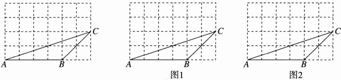 (2)分别在图1和图2中各画一个格点三角形,使得所画的三角形和$\triangle ABC$相似且不全等.(所画的两个三角形也不全等)