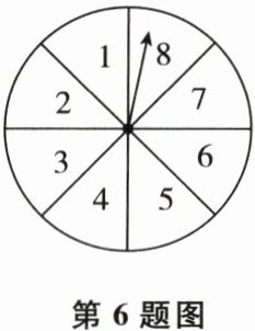 6. 如图,转盘中8个扇形的面积都相等,任意转动转盘1次,当转盘停止转动时,估计下列4个事件发生的可能性大小,其中事件发生的可能性最大的是( )