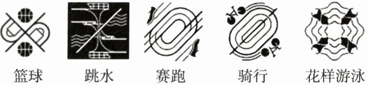 5. 第33届夏季奥运会于2024年7月26日——8月11日在法国巴黎举行,下图的五张卡片(除正面图案外完全相同)分别印有巴黎奥运会的项目图标:篮球、跳水、赛跑、骑行和花样游泳,其中跳水和花样游泳是水上项目,现将五张卡片背面朝上放置,打乱后随机抽取一张,抽到卡片上的图标恰好是水上项目的概率是( )