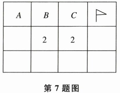 7. 电脑上有一个有趣的“扫雷”游戏,如图,这是扫雷游戏的一部分,说明:图中数字2表示在以该数字为中心的周边8个方格中有2个地雷,小旗表示该方格已被探明有地雷,现在还剩下A,B,C三个方格未被探明,其他地方为安全区(包括有数字的方格),则( )