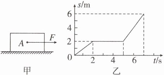 9. 重100 N的物体A在水平地面上受到一个水平力F的作用,如图甲所示,它的s-t图像如图乙所示。当t= 1 s时,作用在物体A上的水平力F大小为20 N,则t= 6 s时,关于作用在物体A上的水平力F,下列选项正确的是( )