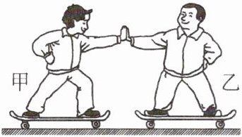 8. 质量相等的甲、乙两位同学站在滑板上,在旱冰场上相对而立。若甲用60 N的力推乙(如图所示),则下列分析正确的是( )
