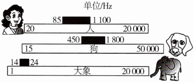 D.因为大象和狗的“发声频率”没有重叠区,所以狗的叫声大象永远也听不见