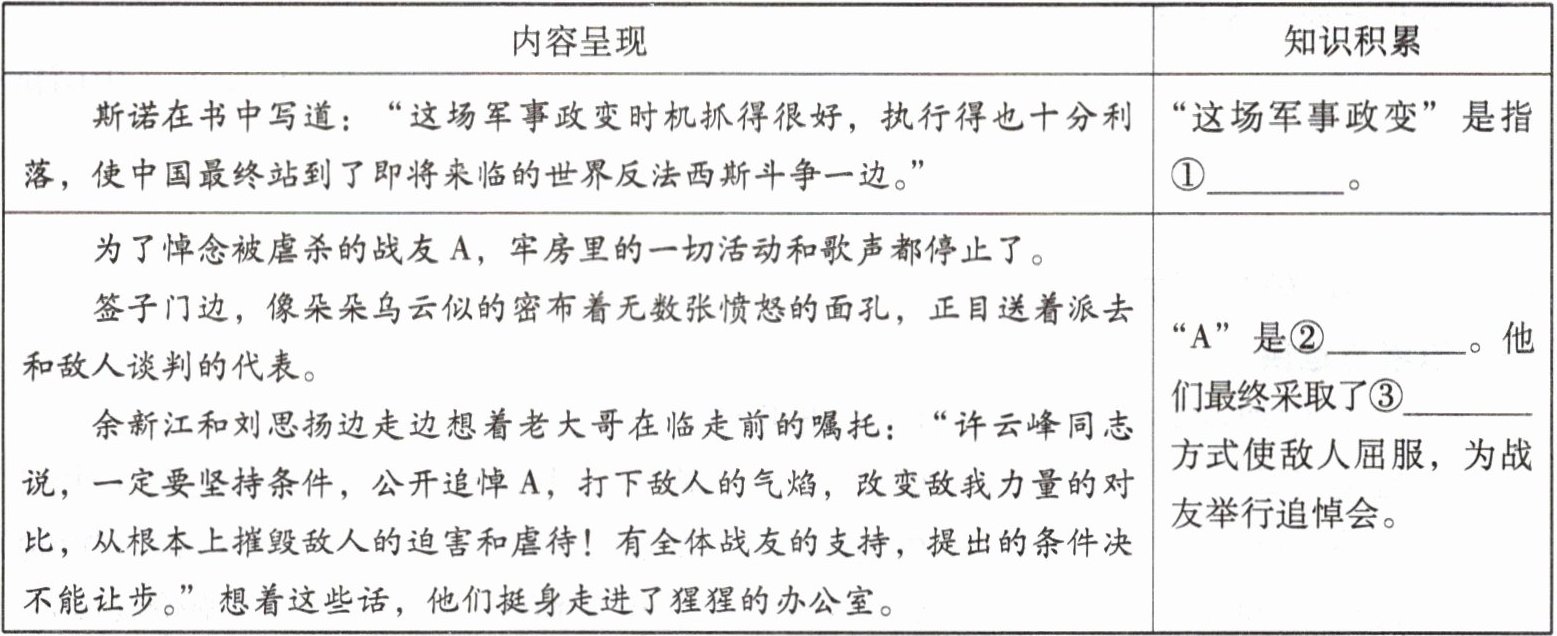 班级开展名著阅读活动,请你填写阅读记录卡的空缺处。