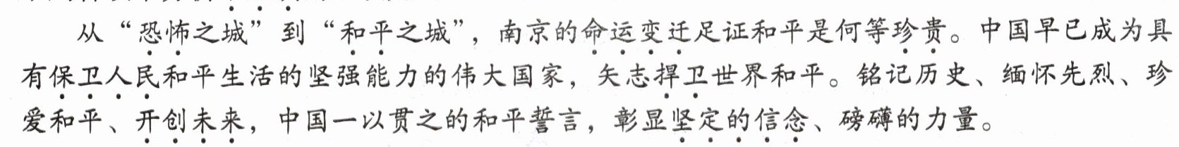 示例:不为记住仇恨,是要珍惜和平。(南京大屠杀死难者国家公祭日)
