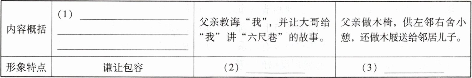 19. 根据选文中有关父亲的内容,完成下面表格。(3分)