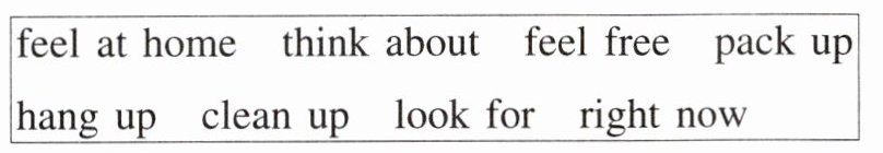 13.right now 14.feel at home 15.looked for 16.hung up 17.feel free 18.think about 19.cleaning up 20.pack up