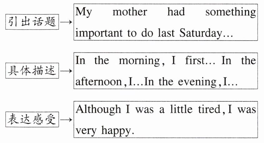 假如你是张红,上周六你的妈妈因为有些重要的事情要做,需要到晚上8点才能回家,她打电话让你帮她做些家务活。请你写一篇不少于80词的英语短文,与大家分享一下你所做的家务活,然后说说你做家务的感受。