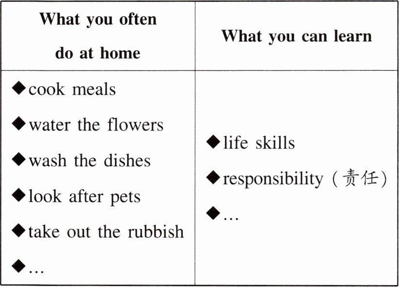 在你校“劳动教育月”期间,校英语报发起了以“A Helper at Home”为主题的征文活动。请你结合自身情况,用英语写一篇短文投稿,谈谈你经常做的两项家务以及你的收获。内容提示如下: