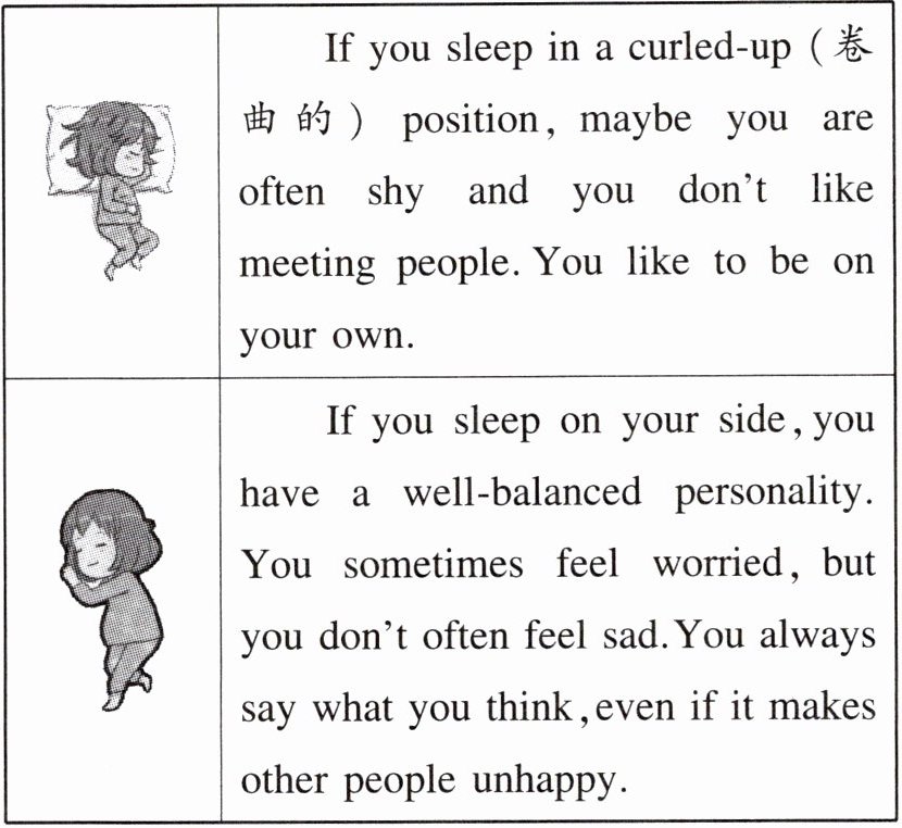 Everyone has two personalities—the one that is shown to the world and the other that is secret and real. When you're asleep, your sleeping position (睡姿) always shows the real you.