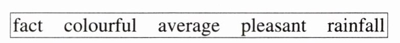 1.rainfall 2.more colourful 3.facts 4.pleasant 5.average