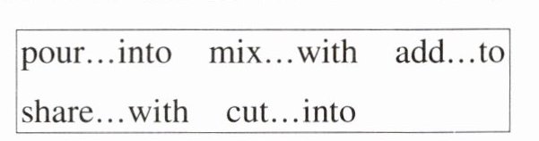 11.add;to 12.cut;into 13.poured;into 14.mix;with 15.shared;with