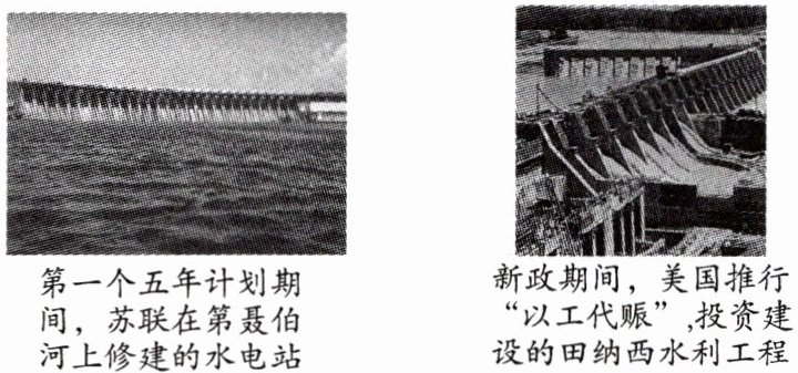 题目:国家干预经济增强国力 论述:第聂伯河水电站和田纳西水利工程都由政府主持修建,都促进了工农业的发展,都推动了本国经济的发展。第聂伯河水电站是当时欧洲规模最大,也是世界上最先进的水电站之一。它是苏联社会主义工业化的标志性成果,为整个国家的经济发展提供了有力的保障。田纳西水利工程是当时美国兴办的最大的水利工程,它的实施不仅缓解了美国的失业问题,而且大大促进了田纳西河流域工业和农业的发展。