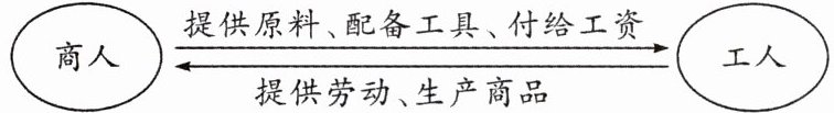 ◆商人 提供原料、配备工具、付给工资 ⇄ 提供劳动、生产商品 ◆工人