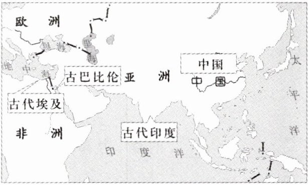 9.(跨学科:地理)下图中标注出的四个文明古国,在地理位置方面的相同点是( )