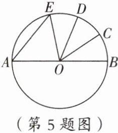 5.[期末·盐城]如图,AB是$\odot O$的直径,$\widehat{BC}= \widehat{CD}= \widehat{DE}$,$\angle COD= 34^{\circ}$,则$\angle AEO$的度数是______.