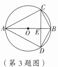 3.[中考·荆门]如图,CD是圆O的弦,直径$AB\perp CD$,垂足为E,若$AB= 12$,$BE= 3$,则四边形ACBD的面积为( )