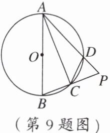 9.[模拟·温州]如图,在⊙O的内接四边形ABCD中,AB是⊙O的直径,C为$\overset{\frown}{BD}$的中点,延长AD、BC交于P,连接AC.
