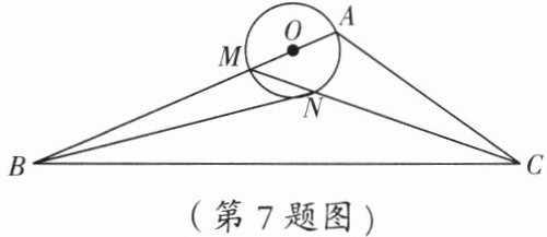 7.[一模·扬州]如图,在△ABC中,∠BAC= 120°,AB= 6,AC= 4,点M是AB边上一动点,连接CM,以AM为直径的⊙O交CM于点N,则线段BN的最小值为______.