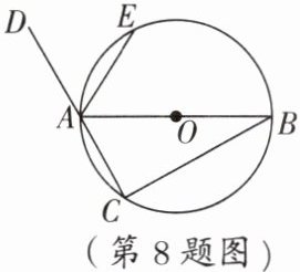 8.[月考·靖江]如图,AB是⊙O的直径,点C在圆上,∠BAD是△ABC的一个外角,它的平分线交⊙O于点E.不使用圆规,请你仅用一把不带刻度的直尺作出∠BAC的平分线,并说明理由.