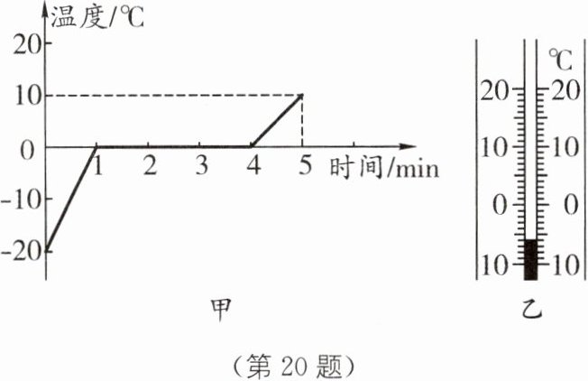 20. 小杨同学在探究“冰熔化时温度的变化规律”时,画出了冰熔化时温度随时间变化的图像,如图甲所示.