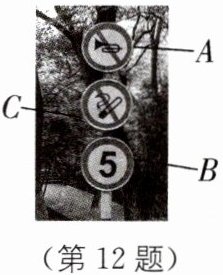 12. 如图所示是森林保护区的场景。图中B是汽车限速标志,它表示的含义是