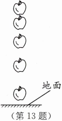 13. 如图所示是苹果下落过程中每隔相等时间曝光一次所得的照片,以
