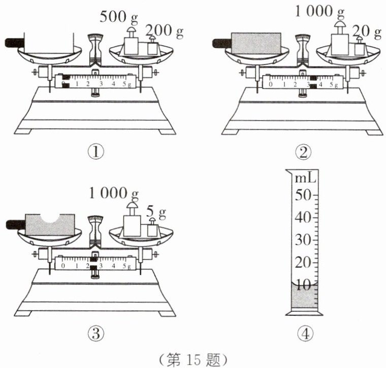 (2)①② “商鞅方升”中装满了水,放在天平上测量总质量时水容易溢出