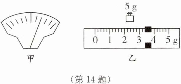 盘中,另一盘所加砝码和游码位置如图乙所示时,天平平衡. 蜡块的质量为8.4