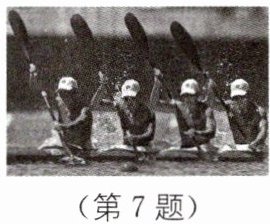 7. 如图所示,划艇比赛的运动员随着有节奏的号子声,大家齐心合力划动桨使船快速前进的力是(