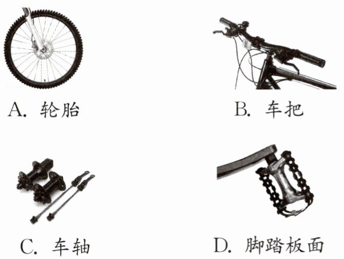 8. 如图所示,自行车的各个部分中,减小了有害摩擦的是(