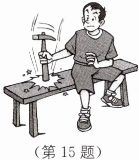 15. 如图所示,锤子的锤头变松了,人们常用撞击锤柄下端的方法使锤头紧套在锤柄上.当锤柄下端受到撞击时,锤柄比锤头先停止运动,这是利用了____(
