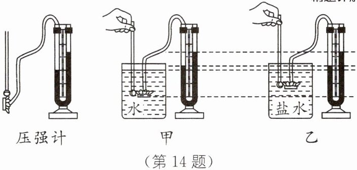 (2)小明在图甲中,保持金属盒深度不变,改变橡皮膜朝向,目的是探究液体内部压强大小与