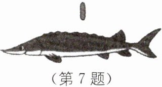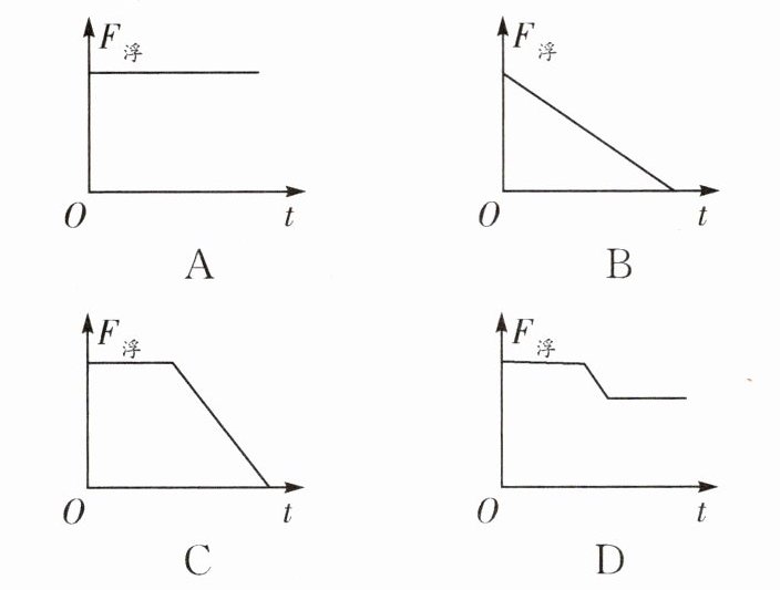 7. 如图所示,为拯救濒危物种中华鲟,生物学家在放养的中华鲟身上拴上定位硬壳胶囊.数天后,胶囊与潜入水中的中华鲟脱离,最终漂浮于江面发射定位信号.脱离后,胶囊受到的浮力随时间变化的关系图像为下列图中的(