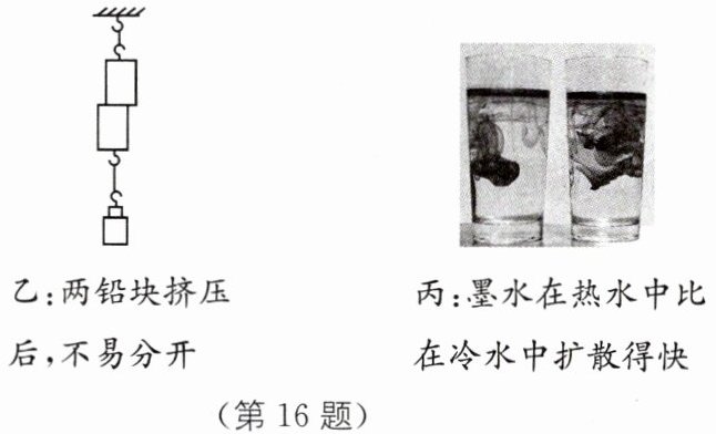 . 如图丙所示的实验现象说明温度越高,分子运动越剧烈