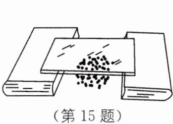 15. 如图所示,将一块透明有机玻璃板架在两本书之间,在下方撒上小纸屑,用干燥的丝绸在玻璃板上摩擦,会观察到下方的小纸屑上下飞舞,跳跃不停,这是因为有机玻璃板被丝绸摩擦后带上了