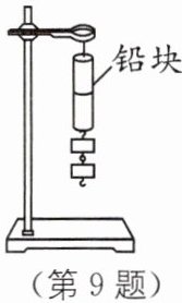 9. 如图所示,将两个表面光滑的铅块相互紧压,它们会粘在一起,下方可以挂起重物,该现象主要说明了(
