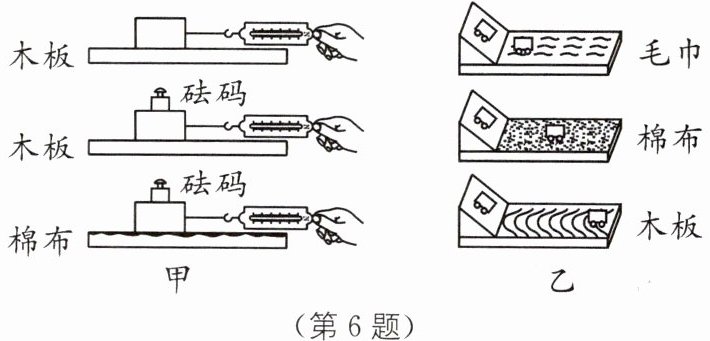 6. 如图所示,两个实验分别是“探究影响滑动摩擦力大小的因素”和“探究阻力对物体运动的影响”,以下分析正确的是(