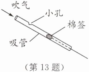 13. 如图所示是用吸管和棉签制作的“鸟鸣器”,从管口吹气,能发出类似鸟叫的声音,鸟鸣器发声是由空气
