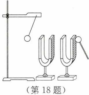 18. 如图所示,敲响右边的音叉,左边完全相同的音叉也会发音,并且把泡沫塑料球弹起,这个实验说明了