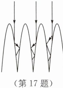 17. 声音也会钻“牛角尖”,如图所示. 当声波钻进吸音壁上的楔形物体后,不再反射回来,声波被大量吸收了. 根据上述材料提供的信息,请解释下列现象:一场大雪后,大地银装素裹,这时你会发现周围特别宁静,这是为什么? 因为
