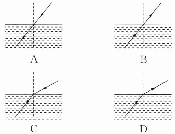 6. 人在岸上透过池水看池塘底部,下列光路图正确的是(