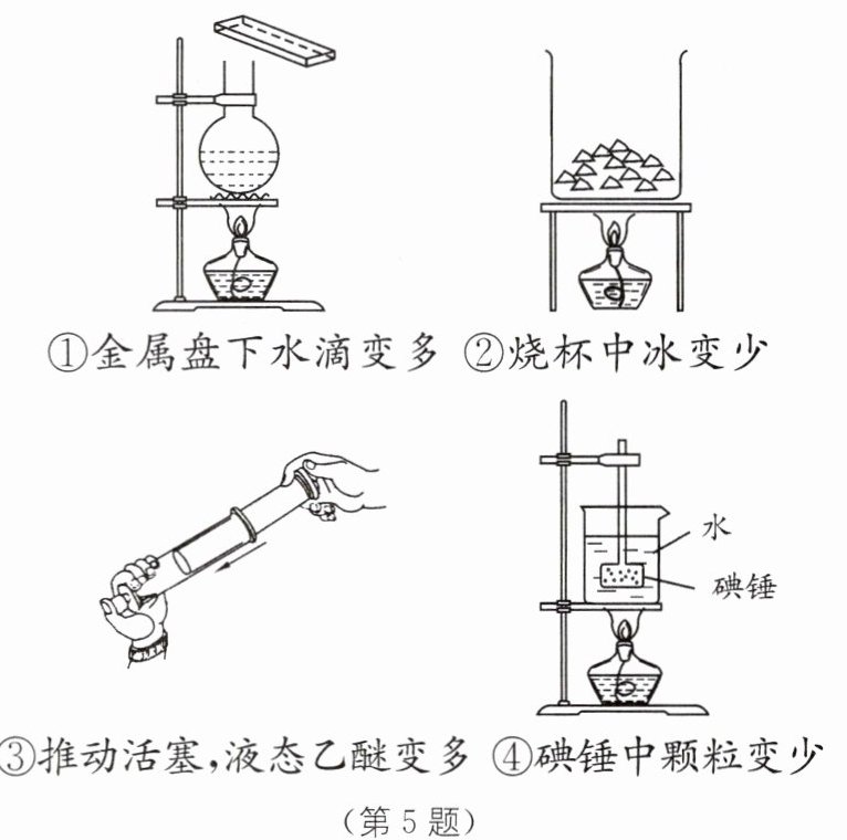 5. 以下描述中“变多”“变少”的过程,吸热的是(
