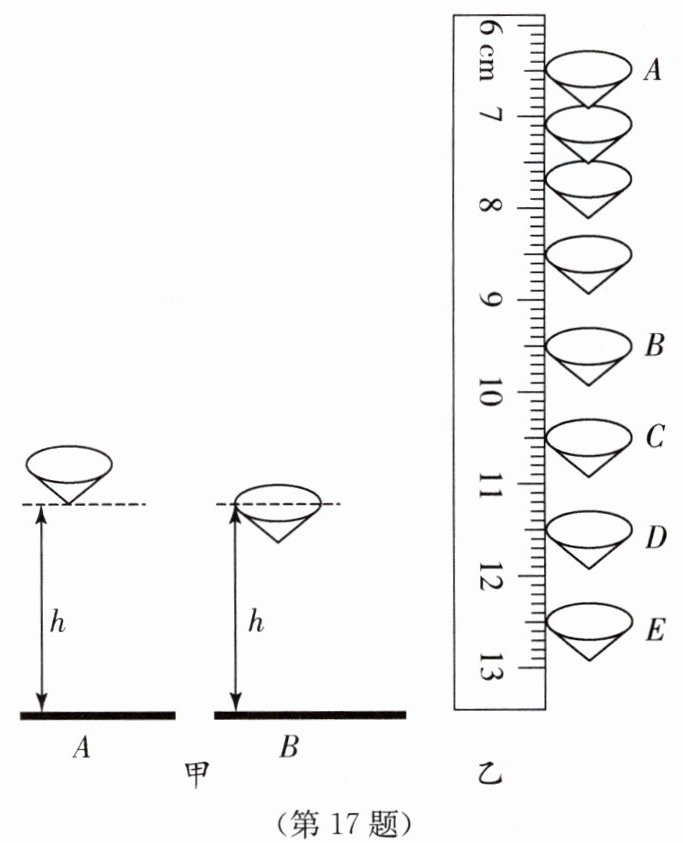 17. 课外实践活动中,小明用秒表和刻度尺测量纸锥下落的速度.