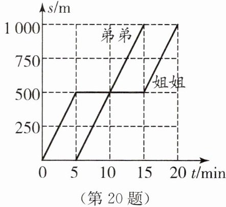 20. 小明同学和姐姐在同一所学校上学.某一天吃过早餐后,姐弟俩约定从小区门口出发去学校大门口会合.他们的行驶路程 s 与所用时间 t 的关系如图所示.求: