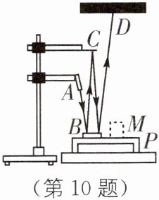 10. 把微小放大以利于观察,这是物理学中一种重要的方法. 如图所示是一种显示微小形变的装置. A 为激光笔,B、C 是平面镜,P 为台面,未放重物时,激光束反射在屏上的光斑为点 D,当把重物 M 放在台面 P 上时,台面将发生微小形变,以下说法中正确的是(