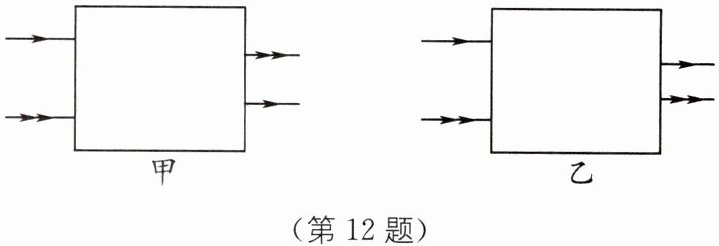 12. 实验中有时需要将一束粗平行光变成细平行光,这可以利用两块透镜的组合来解决,试在图中的两个方框内各画出一种组合方式,分别写出两块透镜间的距离s跟两块透镜到各自焦点的距离$f_1、$$f_2$的关系.