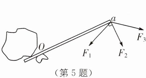 5. 某次大地震中,巨大的石头挡住了救援车辆的通路,救援人员要用撬棍将石头撬开.如果在撬棍$a$端分别沿如图所示三个方向用力,其中最省力的是(