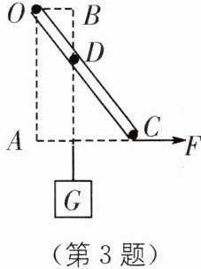 3. 如图所示,一根杠杆可以绕$O$点转动,在$D$点挂一重物$G$,在$C$点加一水平向右的力$F$,其力臂是(