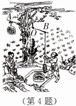4. 传统文化 天工开物之桔槔 如图所示是《天工开物》中记载的我国传统提水工具“桔槔”,用绳子系住一根直的硬棒的$O$点作为支点,A端挂有重为40N的石块,